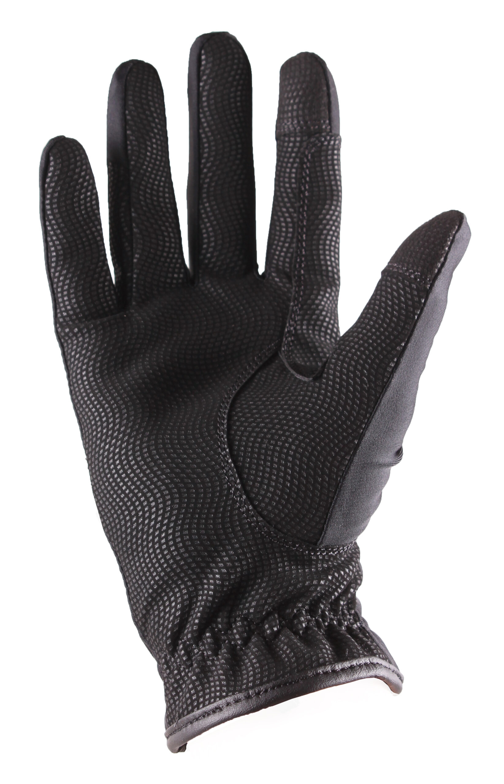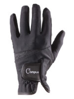 Lightweight and comfortable riding glove in lycra with embossed nubuck grip on the palm and fingers. Narrow glitter panel on the back of the hand. Velcro closure at the wrist with Campus logo. Mobile touch on index finger and thumb.