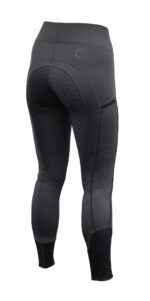 Ridetight med full grip i dejligt blødt materiale med shapeweareffekt. Mobillommer på begge lår med lynlås. Høj talje med bred elastik, som giver en dejlig komfort og super pasform. Meget strækbart 4-vejs stretchmateriale, åndbar og hurtigttørrende.